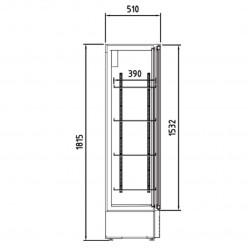 Armoire d'exposition - Température positive (0°/+7°C) - Capacité 200L - 1 porte vitrée (double vitrage) - Extérieur et intérieur en acier plastifié blanc - Contrôle digital de la température et du dégivrage - Evaporateur ventilé sur plaque froide aluminium - Evaporation automatique des eaux de dégivrage - Eclairage intérieur LED - Dotation : 4 clayettes plastifiées