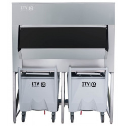 Bac de stockage avec chariot - Stockage : 841kg total (bac : 617 kg / chariot : 2 x 112 kg) - Adaptable sous les têtes de production : MDP 150, MR 400, S MS 220/410, MQ 200, IQ 400/550, IQ 1100, GIQ 550/850CO2/1100, SCALA 400/600, SCALA1000/1500/2000/3000 SPLIT - Carrosserie extérieure en inox - Intérieur isolé en polyéthylène - Bac de stockage avec chariot. Seul le chariot est mobile - Certaines machines nécessitent un adaptateur spécial, compris dans le prix, le signaler à la commande - Prévoir une vidange siphonnée dans le sol - Bac et chariot raccordés à une vidange