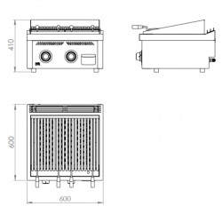 Barbecue à poser à gaz – Puissance 13.01 kW – Tiroir collecteur de graisse amovible sur le devant – Boitier en acier inoxydable – Lignes droites pour nettoyage facile – Grill avec profil en « V » - Thermocouple de sécurité – Pieds réglable – Grill réglable en hauteur, amovible – Tiroir en acier inoxydable pour ramasser cendres et graisses - Comprend les roches volcaniques – Grille intérieures en acier inoxydable