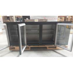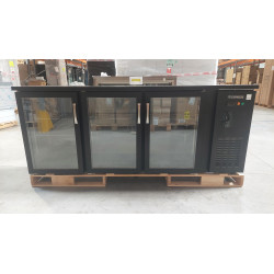 Arrière bar - Température +2°/+8°C - 3 portes vitrées battantes (double vitrage) - Stockage : 500 bouteilles (33cl) - Capacité : 490l - Extérieur en acier galvanisé plastifié noir - Intérieur en acier plastifié gris - Eclairage intérieur LED - Serrure en standard - Thermostat électronique avec afficheur digital, spécial économie d'énergie, protégé des projections - Compresseur hermétique ventilé - Evaporateur et condenseur ventilés - Evaporation automatique des eaux de dégivrage - Alarme haute et basse température sur contrôleur digital - Pieds réglables pour obtenir une hauteur de 880 mm (inclus) - Livré avec 2 clayettes rilsan réglables en hauteur