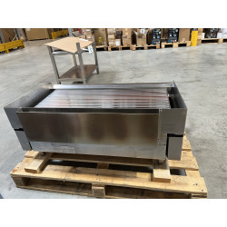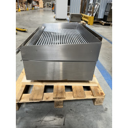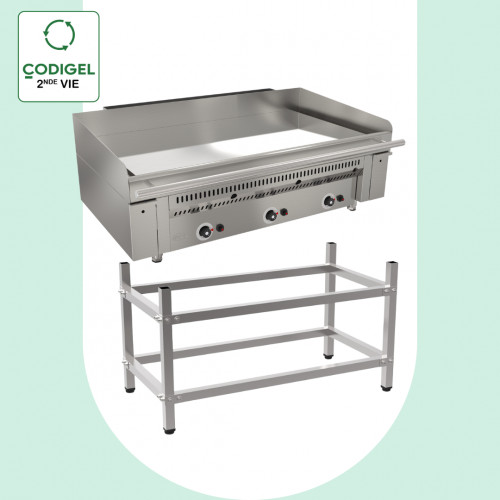 Plaque au chrome gaz haut rendement - Zone de chauffe : 900x500 - 3 zones de cuisson - Puissance : 33 kW - Carrosserie entièrement inox 18/10 - Plancha lisse ou rainurée (option, en standard à droite) - Partie supérieure en alliage d'acier en finition acier rectifié miroir de 18mm d'épaisseur recouvert d'une couche de chrome dur 50 microns - Vanne thermostatique indépendante par zone capables d'atteindre 290°C - Régulation par valve thermostatique avec contrôle de flamme par thermo-couple et allumage par piezzo électrique - Brûleurs en fonte - 1 tiroir à graisse en façade avec une capacité de 5 litres