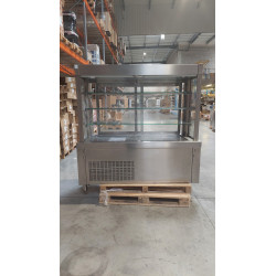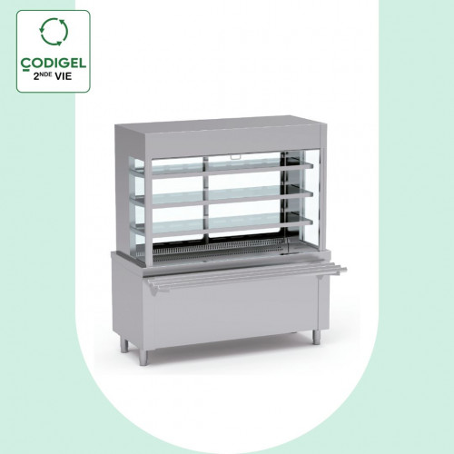 Meuble à boissons - Meuble avec vitrine 3 niveaux - Spécial self pour enfants - Sans réserve - Construction en inox AISI-304 18/10 satiné - Groupe extractible sur glissières pour faciliter l'entretien et la maintenance - Pieds robustes réglables en hauteur - Vitrine : réfrigération par évaporateur ventilé, dégivrage automatique, évaporation automatique des eaux de dégivrage, réglage de la température par thermostat électronique digital, température : +4°/+12°C, portes coulissantes en verre côté service, ouverte côté client avec rideau de nuit , lumière intérieure basse consommation, étagères en verre démontables - Cuve : cuve avec bords arrondis isolée avec du polyuréthane écologique - Capacité : 4 GN1/1 prof. 200 - R290 - + Rampe à plateaux SCBR-160 = 24021020211 + Plinthes SZ-160 = 24021121418 et 24021121417 + Plinthe SZL-70 = 24021121419