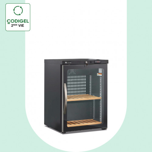Armoire à vin mono-température - Gamme Service - Tôle plastifiée extérieure (skinplate noir) - Froid ventilé avec dégivrage automatique - Porte en verre réversible - Éclairage LED - Serrure standard - Température définie par l’utilisateur Isolation 50 mm de polyuréthane à base d’eau - Étagères amovibles en bois 1 x (480x375mm) + 1 x (480x255mm) - 4 Pieds de nivellement