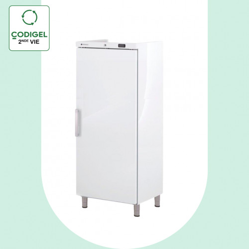 Armoire intérieur ABS GN2/1 - Température négative (-20°/-15°C) - Capacité 605l - 1 porte pleine - Extérieur tôle blanche - Arrière galva - Intérieur ABS thermoformé blanc - Evaporateur ventilé + plaque froide - Contrôle de température par thermostat réglable - Vidange pour les eaux de nettoyage - Pieds inox réglables (125 à 200mm) et serrure en standard - Ambiance 30°C - Alarme haute et basse température sur contrôleur digital - Dotation : 3 clayettes GN2/1 plastifiées