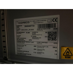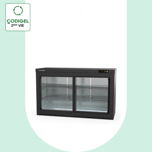 Arrière bar - Température +2°/+8°C - 2 portes vitrées coulissantes (double vitrage) - Stockage : 425 bouteilles (33cl) - Capacité : 307l - Extérieur en acier galvanisé plastifié noir - Intérieur en acier plastifié gris - Eclairage intérieur LED - Thermostat électronique avec afficheur digital, spécial économie d'énergie, protégé des projections - Compresseur hermétique ventilé - Evaporateur et condenseur ventilés - Evaporation automatique des eaux de dégivrage - Alarme haute et basse température sur contrôleur digital - Livré sur tampons réglables - Livré avec 2 clayettes rilsan réglables en hauteur
