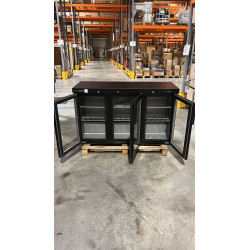 Arrière bar - Température +2°/+8°C - 3 portes vitrées battantes (double vitrage) - Stockage : 320 bouteilles (33cl) - Capacité : 307l - Extérieur en acier galvanisé plastifié noir - Intérieur en acier plastifié gris - Eclairage intérieur LED - Serrure en standard - Thermostat électronique avec afficheur digital, spécial économie d'énergie, protégé des projections - Compresseur hermétique ventilé - Evaporateur et condenseur ventilés - Evaporation automatique des eaux de dégivrage - Alarme haute et basse température sur contrôleur digital - Livré sur tampons réglables - Livré avec 2 clayettes rilsan réglables en hauteur
