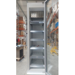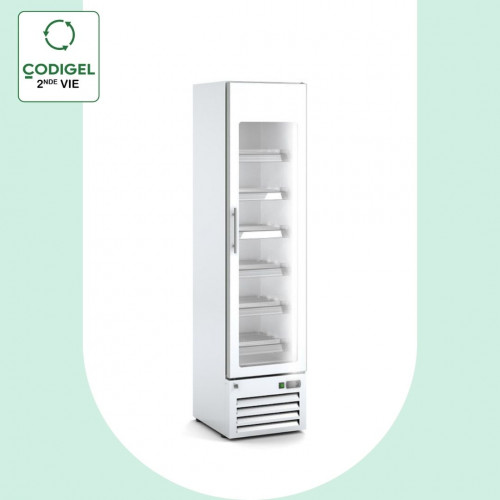 Armoire d'exposition 1 porte - Température (-25° , -15°C)-Extérieur et intérieur en acier plastifié blanc - Etagère en file d'acier plastifié, réglable - Compresseur hermétique à haut couple de démarrage- Evaporateur ventilé imprimé sur plaque d'aluminium - Contrôle digital de température et du dégivrage - Eclairage intérieur led - Condensateur ventilé - Isolation en polyuréthane injecté - Evaporation automatique de l'eau de dégivrage