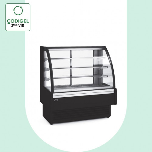 Vitrine service arrière 3 étagères - Extérieur en acier plastifié - Intérieur en inox AISI-304 18/10 - Fond plat - Cotés ABS thermoformé - Isolation en polyuréthane - Profils en aluminium anodisé - 3 étagères fixe en verre - 2 portes arrières coulissantes - Vitre bombée en double vitrage sécurit rabattable - Lumière LED en partie haute et sous chaque étagère - Froid ventilé - Condenseur ventilé - Evaporateur ventilé - Dégivrage automatique avec évaporation automatique - Thermostat électronique à affichage digital - Décoration façade et côtés en standard - Classe climatique 3 (25°C 60%)