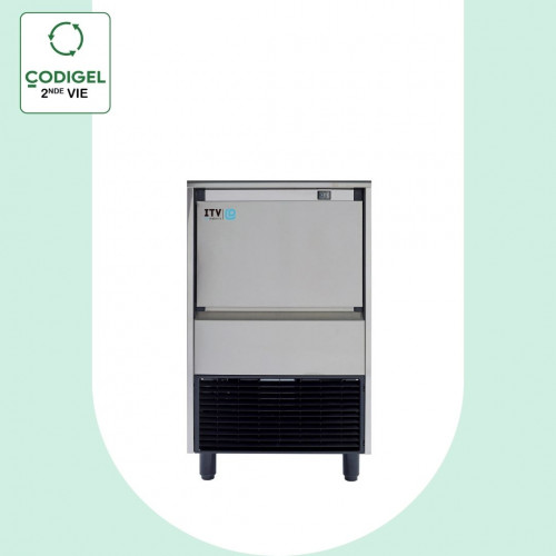 Machine à glaçons - Gamme DELTA-MAX - Production (24H): 62kg - Stockage: 25kg - Carrosserie inox AISI-304 18/10 - Système à injection avec gicleurs souples - Ce système évite la formation de calcaire - Refroidissement AIR - Glaçons pleins tronconiques 40g - Compresseur : 1/2 cv - Glaçons par cycle : 36 - Consommation d'eau (L/h) : 9,6 - Pompe surdimensionnée avec le corps immergé évitant le risque de panne - Vidange 25 mm - Pieds réglables de 105 à 155 mm