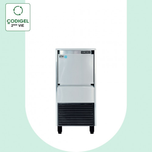 Machine à paillettes - Gamme ICE QUEEN - Production (24H): 55kg - Stockage: 20kg - Carrosserie inox AISI-304 18/10 - Refroidissement AIR - Glace à grains non agressive - Température de la glace : -2°/-3°C - Consommation d'eau (L/h) : 3,1 - Système à vis sans fin (évaporateur cylindrique vertical) - Compresseur : 1/4 cv - Condenseur surdimensionné optimum pour les ambiances chaudes - Arrêt électromécanique du cycle - Vidange : 25 mm - Pieds réglables de 105 à 155 mm