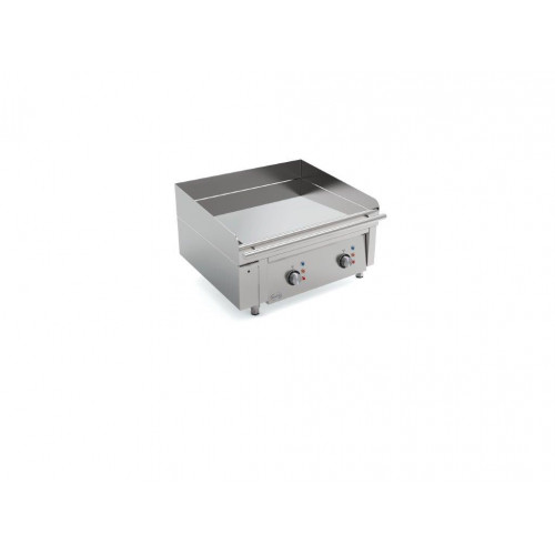 Plaque au chrome électrique - Zone de chauffe : 600x500 - 2 zones de cuisson - Puissance : 8 kW - Carrosserie entièrement inox 18/10 - Plancha lisse ou rainurée (option, en standard à droite) - Partie supérieure monobloc avec plaque soudée étanche 18 mm - Bain chrome rectifié miroir 50 microns - Régulation par thermostat indépendant max. 280-290°C - 1 tiroir à graisse avec une capacité de 4 litres - Nettoyage facile sans détergent - Possibilité d'adapter une presse pour cuisson double face