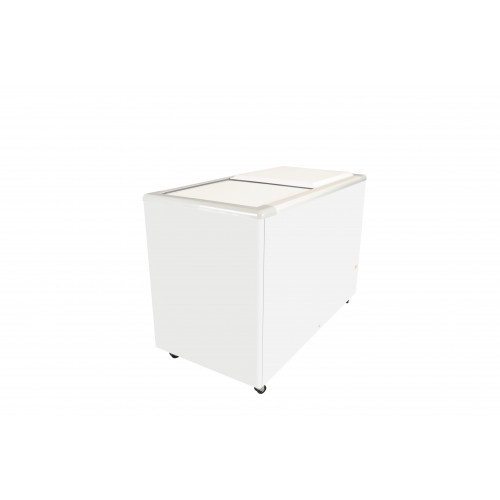 Congélateur horizontal - Couvercle coulissant plein - Température de fonctionnement : –24°C à –16°C - Dimensions : 1310x680x910 - Volume net : 337L - Gaz R290