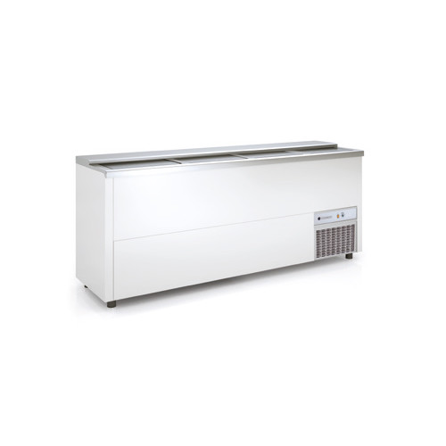 Refroidisseur à bouteilles et cannettes - Série fond ESCALIERS - Température +2°+8°C - 4 portes coulissantes inox - Capacité : 580l - 3 séparations intérieures - Extérieur tôle plastifiée blanche (sauf arrière en galva) - Intérieur en galva - Dessus en inox AISI-304 - Pour un stockage économique des bouteilles et cannettes avec un froid maximum - Interrupteur M/A et thermostat électromécanique - Compresseur hermétique ventilé - Evaporateur statique