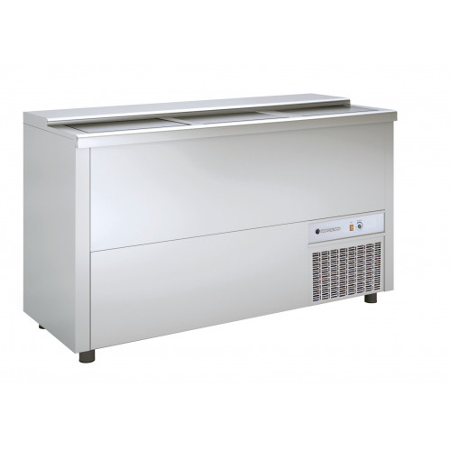 Refroidisseur à bouteilles et cannettes - Série fond ESCALIERS - Température +2°+8°C - 3 portes coulissantes inox - Capacité : 420l - 2 séparations intérieures - Intérieur et extérieur en inox AISI-304 (sauf arrière en galva) - Dessus en inox AISI-304 - Pour un stockage économique des bouteilles et cannettes avec un froid maximum - Interrupteur M/A et thermostat électromécanique - Compresseur hermétique ventilé - Evaporateur statique