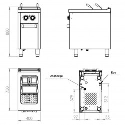 Cuiseur à pâtes électrique - 1 cuve - Capacité 25L -Cuve en acier inoxydable AISI 316 - Valve de remplissage inclus - Vanne de drainage inclus pour le nettoyage du réservoir - Drainage connectable - Température 0°C - 99°C - Thermostat de sécurité - Contrôle de puissance - Pieds ajustables - Paniers inclus ( 1 panier 1/2 et 2 paniers 1/4)