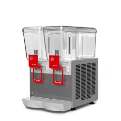 Distributeur de boissons froides - Gamme DELUXE - Série Top - Cuve 2x12 litres - Carrosserie en acier inox - Réservoir et robinet facilement démontables et nettoyables - Compresseur hermétique - Distributeur facile à utiliser et adaptable, conçu pour refroidir les boissons non-gazeuses - Un compresseur indépendant par cuve - Réservoir en polycarbonate anti-choc non toxique - Système Agitateur (AA) ou Pompe immergée (P) à préciser à la commande - Niveau de bruit inférieur à 70 dB