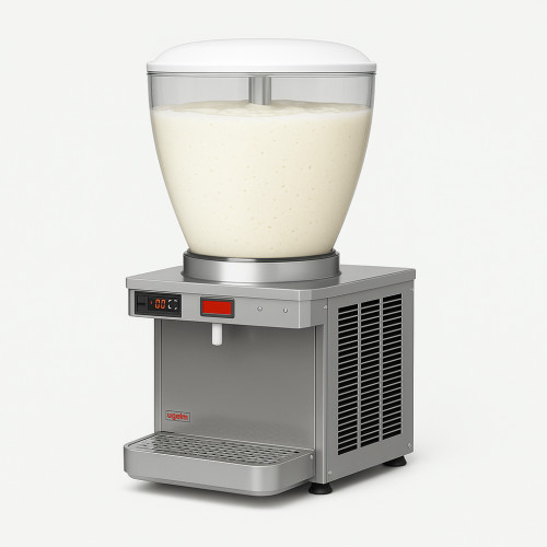 Distributeur de produits lactés - Série Top - Cuve 19 litres - Procédés techniques particuliers garantissant un mélange parfait même avec les boissons les plus délicates - Réservoir en polycarbonate antichoc non toxique - Toutes les parties en contact avec la boisson sont facilement démontable et nettoyable - Affichage électronique de la température