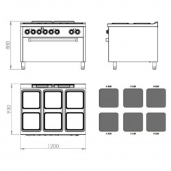 0 Fourneau 6 plaques Série 900 four MAXI