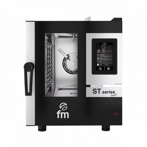 Four mixte à injection de vapeur - Série COMPACT - Capacité 6 x GN1/1 - Panneau de commande tactile - Capacité : 4à11xGN1/1 - Afficheur numérique dans le système de panneau de commande - Ecran tactile convivial - Inverseur de rotation - Alarme de fin de cycle - Interrupteur de porte - Thermostat de sécurité - Eclairage intérieur LED - Double-vitre ouvrante pour facilité le nettoyage - Climat Control : Contrôle de la vapeur - Steam Control : Cheminée programmable - 3 modes de cuisson : chaleur sèche, vapeur et mixte - 99 programmes de cuisson avec 6 étapes de cuisson chacun - Multicook / All on Time - Régénération / Maintien de la température des aliments - Livre de cuisine personnalisable avec photos - Electrique - Nettoyage automatique - Sonde à coeur amovible