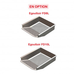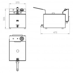 Friteuse de table - Avec vidange - Puissance 3,8 kW - Equipement haute performance et de grande qualité conçu de façon à préserver la qualité et les caractéristiques de l'huile – Indicateur de niveaux d’huile – Pilote orange indicateur de fonctionnement de la résistance - Structure en acier inoxydable -Thermostat réglable jusqu’à 195°C - Système de sécurité - Thermostat de sécurité à réarmement 230°C – Résistances électrique en acier inoxydable poli- Capacité huile : 8 L