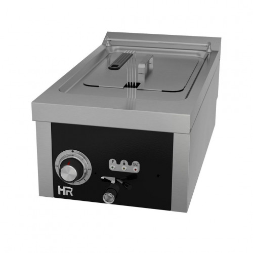 Friteuse de table – 1 cuve - Avec vidange / robinet- Puissance 8 kW - Equipement haute performance et de grande qualité conçu de façon à préserver la qualité et les caractéristiques de l'huile – Indicateur de niveaux d’huile – Voyant orange indicateur de fonctionnement de la résistance, voyant rouge de défaillance dans le thermostat et voyant vert indique une bonne connexion - Cuve emboutie et châssis en acier inoxydable -Thermostat réglable jusqu’à 195°C – Tête amovible pour nettoyage facile -Système de sécurité - Thermostat de sécurité à réarmement 230°C – Résistance électrique pivotante en acier inoxydable - Tuyau de vidange amovible - Dessus embouti en inox AISI304 épaisseur 2 mm - Capacité huile : 15 L