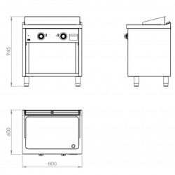 Fry-Top électrique sur meuble - Puissance : 18 kW – Plancha en acier métallique d’épaisseur 15 mm - Boitier en acier inoxydable avec tiroir collecteur de graisse situé à l’avant – Thermocouple de sécurité - Pieds réglables – Plaque de cuisson soudée au sommet –