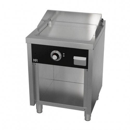Fry-Top électrique sur meuble - Puissance : 12 kW – Plancha en acier métallique d’épaisseur 15 mm - Boitier en acier inoxydable avec tiroir collecteur de graisse situé à l’avant – Thermocouple de sécurité - Pieds réglables – Plaque de cuisson soudée au sommet –
