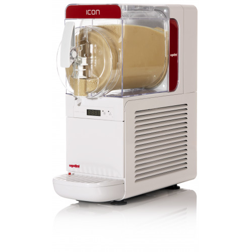 Granité et frappé - Gamme Icon - Série Top - 1 Cuve 6 litres - Commande digitale - Dotée d'une technologie avancée, compact, simple d'utilisation au design sobre et élégant - Possibilité de carrosserie ou de bandeau personnalisé - Carrosserie tôle blanche - Cuve en Tritan facilement démontable - Affichage de la température - Panneau amovible pour nettoyage du condensateur - Bac recueil gouttes amovible avec indicateur de trop plein - Double paroi à mettre sur la cuve pour gain d’énergie (15%). Moins de condensation. Installation et démontage facile
