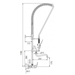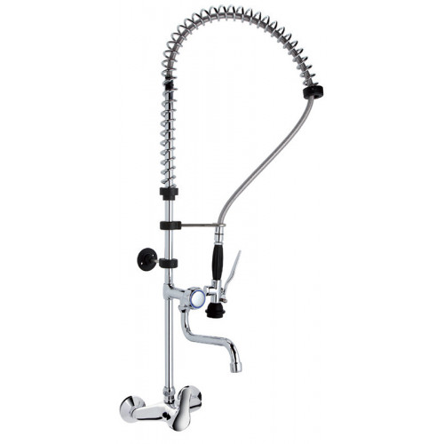 Robinet douchette mural avec col de cygne 2 voies - Construction en laiton chromé haute densité et épaisseur - Gamme industrielle - Excellente qualité, rendement optimisé pour utilisation industrielle - Douchette ergonomique avec poignée plastique anti-calorique + valve anti-retour - Accessoires et tuyaux flexibles nécessaires à l'installation fournis