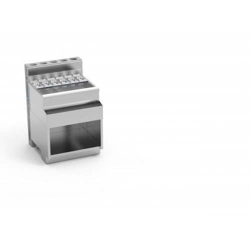 Module avec bac à glaçons pour la préparation de cocktails ou de boissons mixtes - Fabriqué en acier inoxydable AISI-304 18/10, finition satinée - L'option table a une structure en tubes d'acier inoxydable de 40x40mm, entièrement soudée au plan de travail - Plan de travail avec panneau arrière de 80 mm - Emplacement pour les bacs (bacs non inclus) - Avec table à découper en polyéthylène - Support pour bouteilles