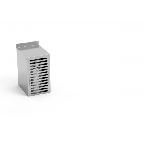 Module avec plan de travail et niche pour tonneau destiné à la préparation de cocktails ou de boissons mixtes - Réalisé en acier inoxydable AISI-304 18/10, finition satinée - Plan de travail lisse avec arrière de 80 mm - Portes perforées amovibles - Les côtés sont pourvus de trous de connexion prédécoupés pour les installations