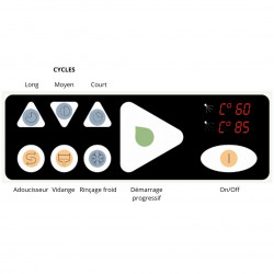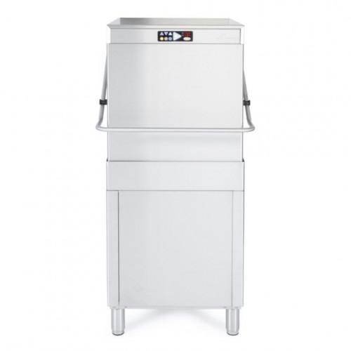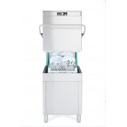 Lave vaisselle à capot 50x50 - Avec pompe de vidange - Carrosserie inox AISI-304 18/10 satiné double paroi - THERMOSTOP system programmable pour effectuer à chaque fois le rinçage final à 82°C - Commandes électroniques - Panneau de commandes en partie haute ergonomique rétro-éclairé par LED - Affichage de la température de l'eau avec possibilité de réglage - Démarrage automatique du cycle - Double système de filtration - Bras de lavage en inox - Doseur automatique de produit de rinçage