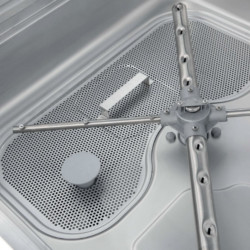 Lave vaisselle à capot 50x50 - TOPLINE - Avec pompe de relevage et récupérateur de buée - Carrosserie inox AISI-304 18/10 satiné double paroi - THERMOSTOP system programmable pour effectuer à chaque fois le rinçage final à 82°C - Commandes électroniques - Panneau de commandes en partie haute ergonomique rétro-éclairé par LED - Affichage de la température de l'eau avec possibilité de réglage - Démarrage automatique du cycle - Double système de filtration - Bras de lavage en inox - Cycle 1-2-4-10 min - Doseur automatique de produit de rinçage - Vidange par gravité - Contenance bac : 20 L - Contenance surchauffeur : 10L - Alim : 2 à 4 bars- Température de lavage : 55°C - Température de rinçage : 82°C - Dotation : 1 panier universel + 1 panier à assiettes + 1 grand godet à couverts - Passage utile : 420 hors tout - Consommation (/cycle) : 1,7 L - POMPE DE VIDANGE