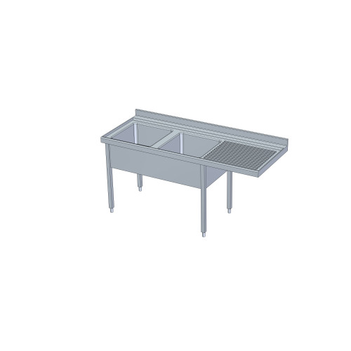 Plonge lave-vaisselle intégré série 700 + 1 bac + 1 égouttoir à gauche - Inox AISI-304 18/10 satiné - Dimensions : 1800 x 700 - Bac de dimensions: 500 x 500 x 300 - Espace pour lave-vaisselle standard jusqu'à 50x50 mm - Livré avec siphon, tube surverse et cache-bac - Sans robinetterie ni pré-perçage - Egouttoir nervuré à bords anti-ruissellement- Dosseret de 100 mm - Table démontable (livrée démontée) - Cuve emboutie et insonorisée - 4 pieds carrés 40 x 40 mm avec hauteur réglable de 850 à 930 mm