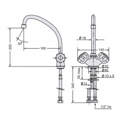 Robinet mélangeur monotrou - Construction en laiton chromé haute densité et épaisseur - Gamme industrielle - Excellente qualité, rendement optimisé pour utilisation industrielle