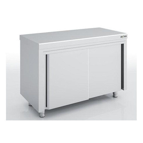 Meuble neutre fermé série 600 - Sans dosseret - Inox AISI-304 18/10 satiné - Dimensions : 1600 x 600 x 850 mm - Portes coulissantes suspendues silencieuses avec guide de portes sur roulements à billes - Dessus et étagère intérieure renforcés par omega - Etagère intérieure réglable en hauteur sur supports très résistants - Pieds robustes et réglables en hauteur