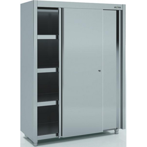 Armoire haute à portes coulissantes - Dimensions : 1600 x 600 x 1900 mm - Portes coulissantes suspendues silencieuses sur roulements - Etagères réglables en hauteur avec supports très résistants - Pieds robustes et réglables en hauteur - Serrure de série