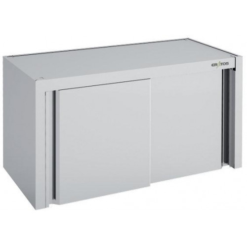 Armoire murale fermée - Inox AISI-304 18/10 satiné - Dimensions : 1200 x 400 x 600 mm - Portes coulissantes suspendues silencieuses sur roulements - Etagère intermédiaire renforcée et réglable en hauteur - Installation facile (visserie fournie)
