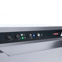 Lave verres et tasses 40x40 - ECOLINE - Avec pompe de vidange - Carrosserie inox AISI-304 18/10 satiné simple paroi - Porte double paroi - Finition scotch brite pour faciliter le nettoyage et la maintenance - Commandes électromécaniques - Cuve emboutie - Nouveau chassis embouti - Charnières renforcées - Système d'arrêt du cycle en cas d'ouverture de la porte - Double système de filtration innovant - Panneau de commandes avec boutons rétro-éclairé par LED - Bras de lavage composite - Cycles 1-2 min- Doseur automatique de produit de rinçage - Contenance bac : 11 L - Contenance surchauffeur : 3L - Alim : 2 à 4 bars- Température de lavage : 55°C - Température de rinçage : 82°C - Dotation : 1 panier universel + 1 godet à couverts - Passage utile : 27 hors tout - Consommation/cycle : 1,5 L