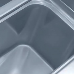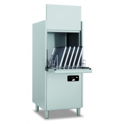 Lave-batterie / Lave-ustensiles - Carrosserie inox AISI-304 18-10 satiné double paroi - Commandes électroniques - Bras supérieurs et inférieurs rotatifs en inox facilement extractibles pour le nettoyage - Cuve emboutie - Doseur de produit de rinçage - Doseur de produit de lavage - Doseur de produit de lavage intermittent - Pompe de rinçage - Cycle auto-nettoyant - Ultra-rinçage (débit d'eau chaude constant) - THERMOSTOP activable - Remplissage intelligent activable - Production : 30 paniers/h - Cycle 2-12min - Contenance bac : 37 L - Contenance surchauffeur : 7L - Alim : 1 à 6 bars - Température de lavage : 55°C - Température de rinçage : 85°C - Dotation : 1 panier inox 560x630 - Passage utile : 850 hors tout - Consommation (/cycle) : 3 L