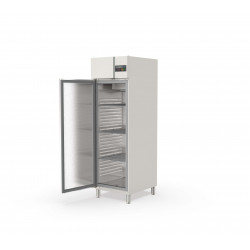 Armoire GN2/1 emboutie - Gamme basic - Température positive (-2°/+8°C) - Capacité 645l - 1 porte pleine - Extérieur et intérieur en inox AISI-304 18/10 (sauf partie arrière) - Côtés emboutis - Evaporateur traité anti-corrosion et compresseur hermétique ventilé - Thermostat électronique avec afficheur digital - Evaporation automatique des eaux de dégivrage - Serrure en standard - Eclairage intérieur LED - Pieds inox réglables de 135 à 200 mm - Ambiance 43°C - Dotation : 3 clayettes rilsan GN2/1 - Isolation 60 mm
