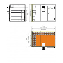 Kit Chambre froide positive 80mm 2990 x 1990 x 2160 mm - groupe paroi - rayonnage en L 4 niveaux H = 1370 mm - Sol renforcé résine phénolique anti-dérapant - Porte non réversible sur ces kits avec serrure et décondamnation intérieure