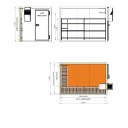 Kit Chambre froide positive 80mm 1990 x 2990 x 2160 mm - groupe paroi - rayonnage en L 4 niveaux H = 1370 mm - Sol renforcé résine phénolique anti-dérapant - Porte non réversible sur ces kits avec serrure et décondamnation intérieure