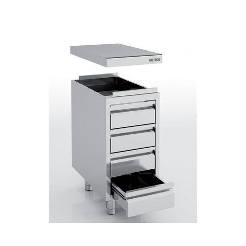 Meuble neutre avec tiroirs série 700 - Sans dosseret - Inox AISI-304 18/10 satiné - Dimensions : 400 x 700 x 850 mm - Meuble comprenant 4 tiroirs pouvant contenir des bacs de taille GN1/1 prof. 100