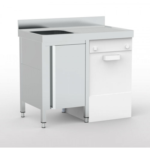 Meuble plonge lave-vaisselle intégré série 700 + 1 bac + 1 égouttoir à droite - Inox AISI-304 18/10 satiné - Dimensions : 1200 x 700 - Bac de dimensions: 500 x 500 x 300 - Espace pour lave-vaisselle standard jusqu'à 600x600x850 mm - Livré avec siphon, tube surverse et cache-bac - Sans robinetterie ni pré-perçage - Egouttoir nervuré à bords anti-ruissellement- Dosseret de 100 mm - Meuble livré monté et soudé - Arrière ouvert pour permettre l'accès aux installations - Portes coulissantes silencieuses avec guide de portes sur roulements à billes - Cuve emboutie et insonorisée - 4 pieds carrés 40 x 40 mm avec hauteur réglable de 850 à 930 mm