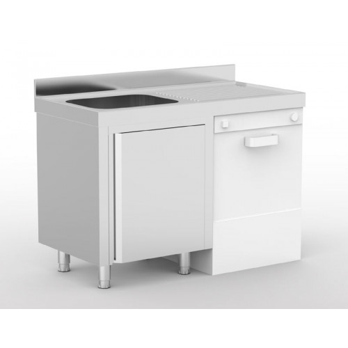 Meuble plonge lave-vaisselle intégré série 700 + 1 bac + 1 égouttoir à droite - Inox AISI-304 18/10 satiné - Dimensions : 1400 x 700 - Bac de dimensions: 600 x 500 x 300 - Espace pour lave-vaisselle standard jusqu'à 600x600x850 mm - Livré avec siphon, tube surverse et cache-bac - Sans robinetterie ni pré-perçage - Egouttoir nervuré à bords anti-ruissellement- Dosseret de 100 mm - Meuble livré monté et soudé - Arrière ouvert pour permettre l'accès aux installations - Portes coulissantes silencieuses avec guide de portes sur roulements à billes - Cuve emboutie et insonorisée - 4 pieds carrés 40 x 40 mm avec hauteur réglable de 850 à 930 mm