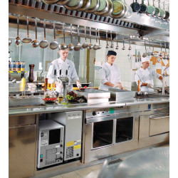 Refroidisseur d'eau NIAGARA IN encastrable - Détente directe avec banc de glace - Carrosserie tôle - Débit continu : 100 L - Débit (h) : 180 L - 3 sorties d'eau - Eau froid 3°/10°C, ambiante et gazeuse - Electrovanne de sécurité inclus qui empêche toute fuite d'eau à l'intérieur de la fontaine - Bac recueil gouttes avec vidange - Réducteur de pression inclus - Condenseur ventilé - Compresseur : 1/3 cv - Détendeur de série - Prévoir cartouche en sus