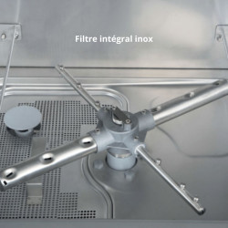 Lave vaisselle / Lave ustensiles 50x50 et 60x40 - TOPLINE - Avec pompe de vidange et adoucisseur - Carrosserie inox AISI-304 18/10 satinée double paroi - Commandes électroniques avec de nombreuse fonctions - Faible consommation grâce à la cuve de taille réduite - 3 cycles de lavage - Poignées inox - Double système de filtration - Rinçage froid supplémentaire - Bras inox - Charnières renforcées - Pieds réglables de 115 mm - Cycle 2-3-4 min - Doseur automatique de produit de rinçage - Doseur de produit de lavage - Amortisseur de porte - Contenance bac : 24 L - Contenance surchauffeur : 7L - Alim : 2 à 4 bars - Température de lavage : 55°C - Température de rinçage : 82°C - Production de paniers / heure : 15 -20 -30 paniers - Capacité du panier : 18 assiettes - 6 plaques pâtissières - Dotation : 1 panier universel + 1 panier 625x500x186 + 1 grand godet à couverts - Niveau sonore : 58 dB - Passage utile : 450 hors tout - Consommation (/cycle) : 2,8 L