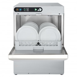 Lave vaisselle 50x50 - EVOLINE - Avec adoucisseur et pompe de vidange - Carrosserie inox AISI-304 18/10 satiné simple paroi - Porte double paroi - Finition scotch brite pour faciliter le nettoyage et la maintenance - SOFT START system : pour éviter de casser les verres et laver les assiettes avec délicatesse - Commandes électromécaniques - Cuve emboutie - Châssis embouti - Charnières renforcées - Système d'arrêt du cycle en cas d'ouverture de la porte - Double système de filtration innovant - Panneau de commandes avec boutons rétro-éclairé par LED - Affichage de la température de lavage et de rinçage - Bras de lavage en composite - Cycle 1-2-3-4-10 min - Doseurs automatique de produit de lavage et rinçage - Contenance bac : 17 L- Contenance surchauffeur : 7L - Alim : 2 à 4 bars- Température de lavage : 55°C - Température de rinçage : 82°C - Dotation : 1 panier universel + 1 godet à couverts - Passage utile : 355 hors tout - Consommation (/cycle) : 1,7 L