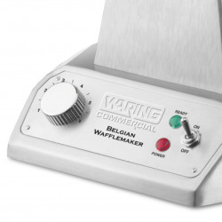 Gaufrier professionnel à gaufre classique en modèle simple de 1200W permettant de préparer jusqu’à 25 gaufres de 2,5cm d’épaisseur par heure, système tournant pour une cuisson uniforme, bip sonore de fin de cuisson, voyants de mise sous tension et de préchauffage et plaque remplaçable à triple revêtement antiadhésif pour faciliter l’entretien